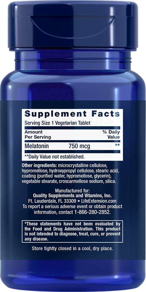 Life Extension – melatonin 6-timers forsinket frigivelse, 750mcg – 60 vegetariske tabletter