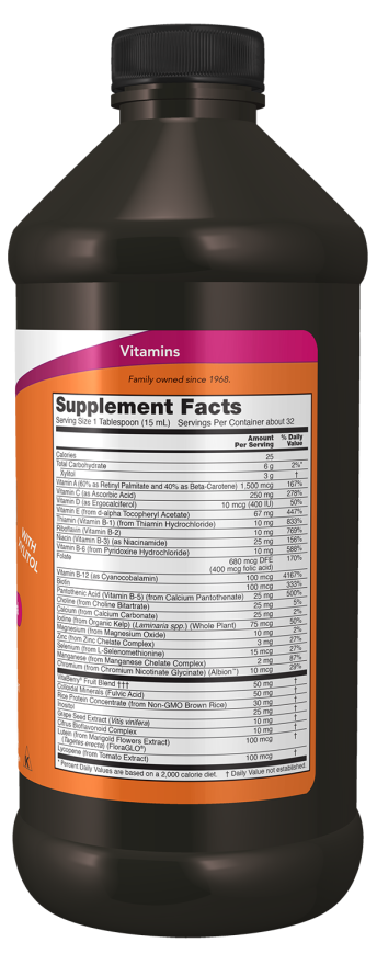 Ανακαλύψτε το υγρό πολυβιταμινούχο συμπλήρωμα της NOW Foods, ιδανικό για κάθε μέρα. Προσφέρεται σε ευχάριστη γεύση τροπικής πορτοκάλι, κάνοντάς τη χρήση του απόλυτα ευχάριστη.